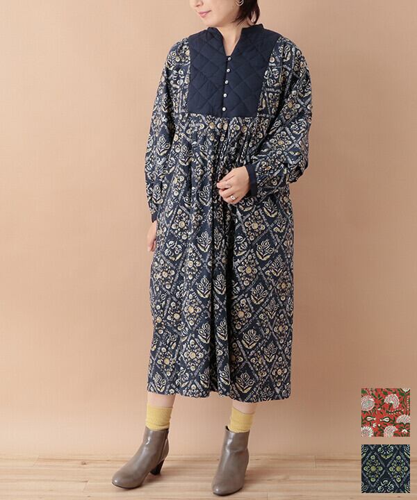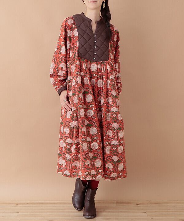 インドの伝統工芸のブロックプリント生地で作られたワンピースです。
